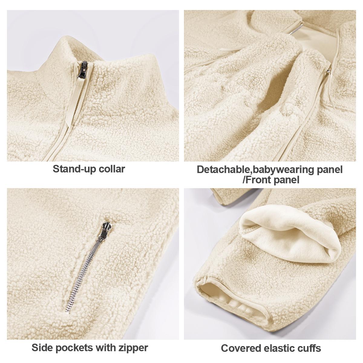 Pwest MAMA Women Before & After Babywearing Fleece Jacket Soft Teddy Fleece, Long-sleeve Zippered Jacket with Pocket, Detachable Babywearing Panel, Winter Warmth, 2 in 1 Design-Cream-BlackFriday